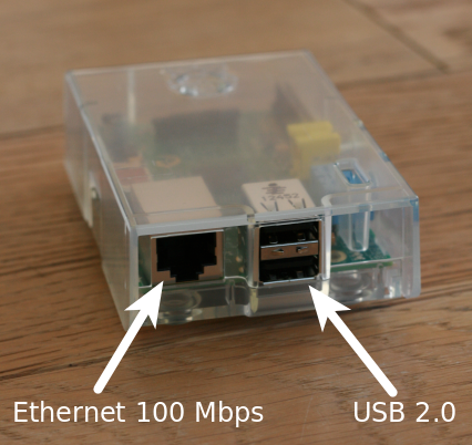 L’interface Ethernet est à la norme FastEthernet (soit un débit théorique maximum de 100 Mbps). Comme le Raspberry Pi n’a pas une capacité de stockage importante, cette vitesse pourra être pénalisante lors de l’accès à vos données stockées sur un NAS ou une autre machine.