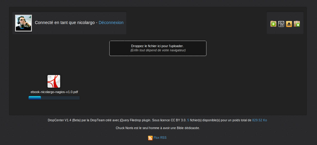 En ce qui concerne la sécurité de votre installation. Je vous conseille de protéger l’accès au script d’upload (index.php) par un mot de passe afin de limiter l’accès à votre service…